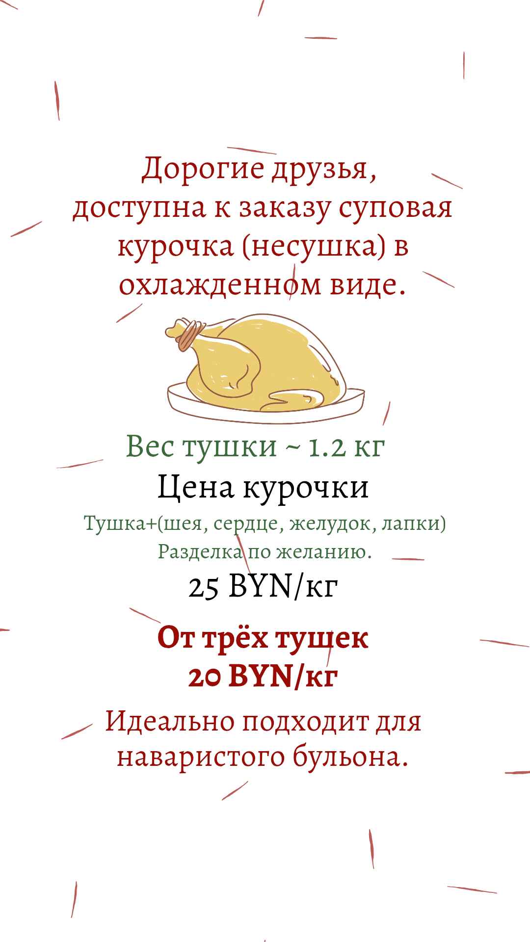18 BYN / 140 гр.Суповая курочка охлажд. ~ 1.2 кг