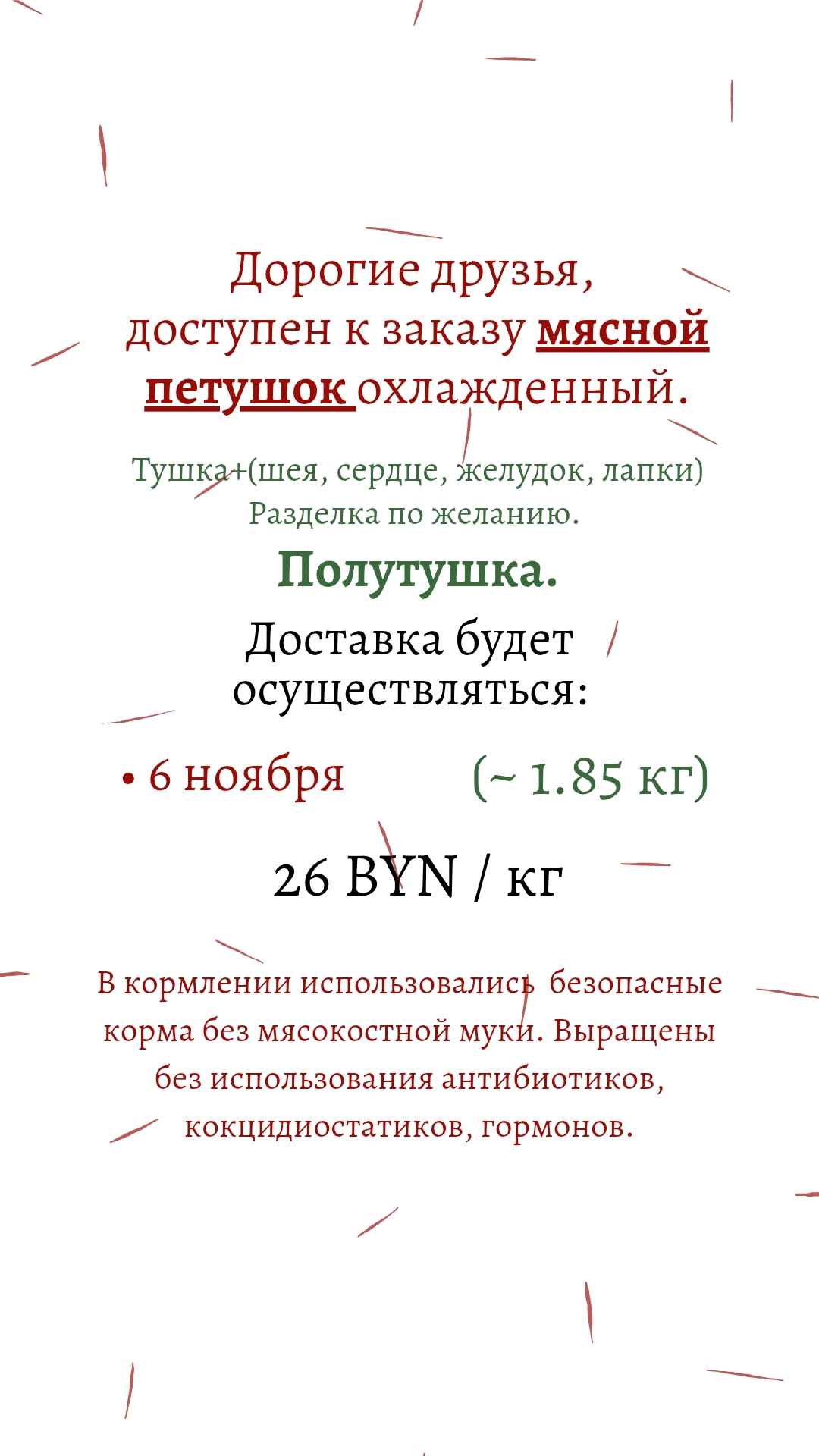 83.2 BYN / 1 средняя тушкаМясной петушок охл. ПОЛУТУШКА ~ 1.85 кг (на 7 ноября)