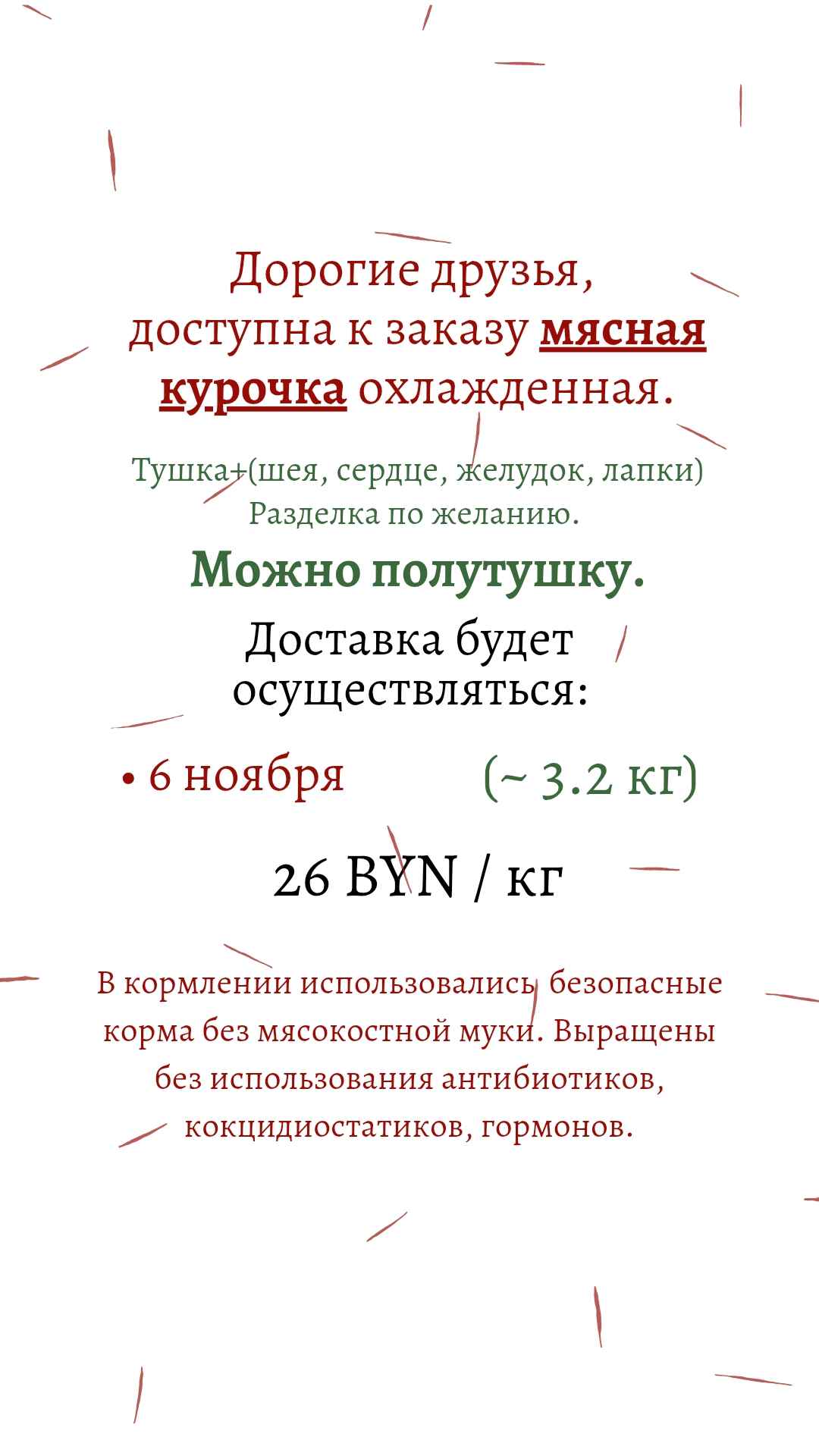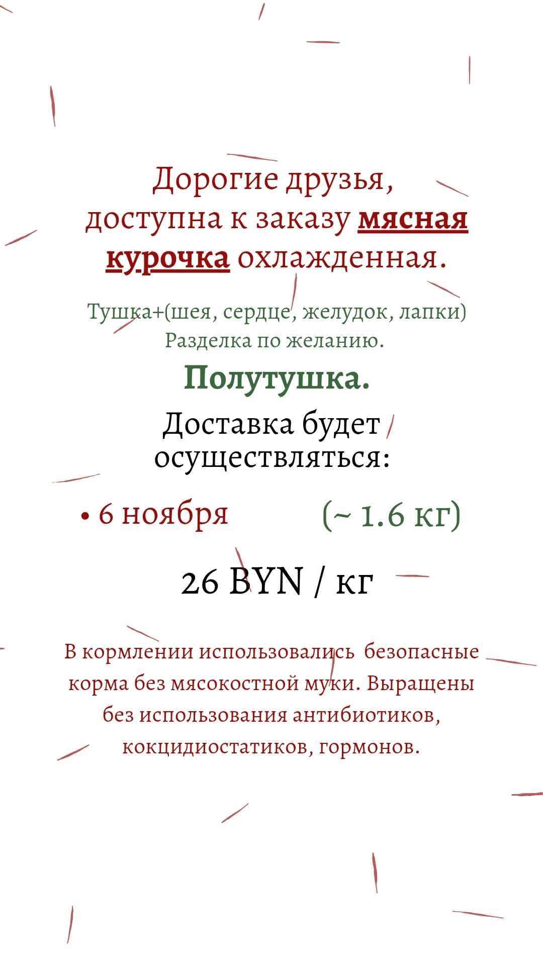 48.1 BYN / 1 средняя полутушкаМясная курочка охл. ПОЛУТУШКА ~ 1.6 кг (на 6 ноября)